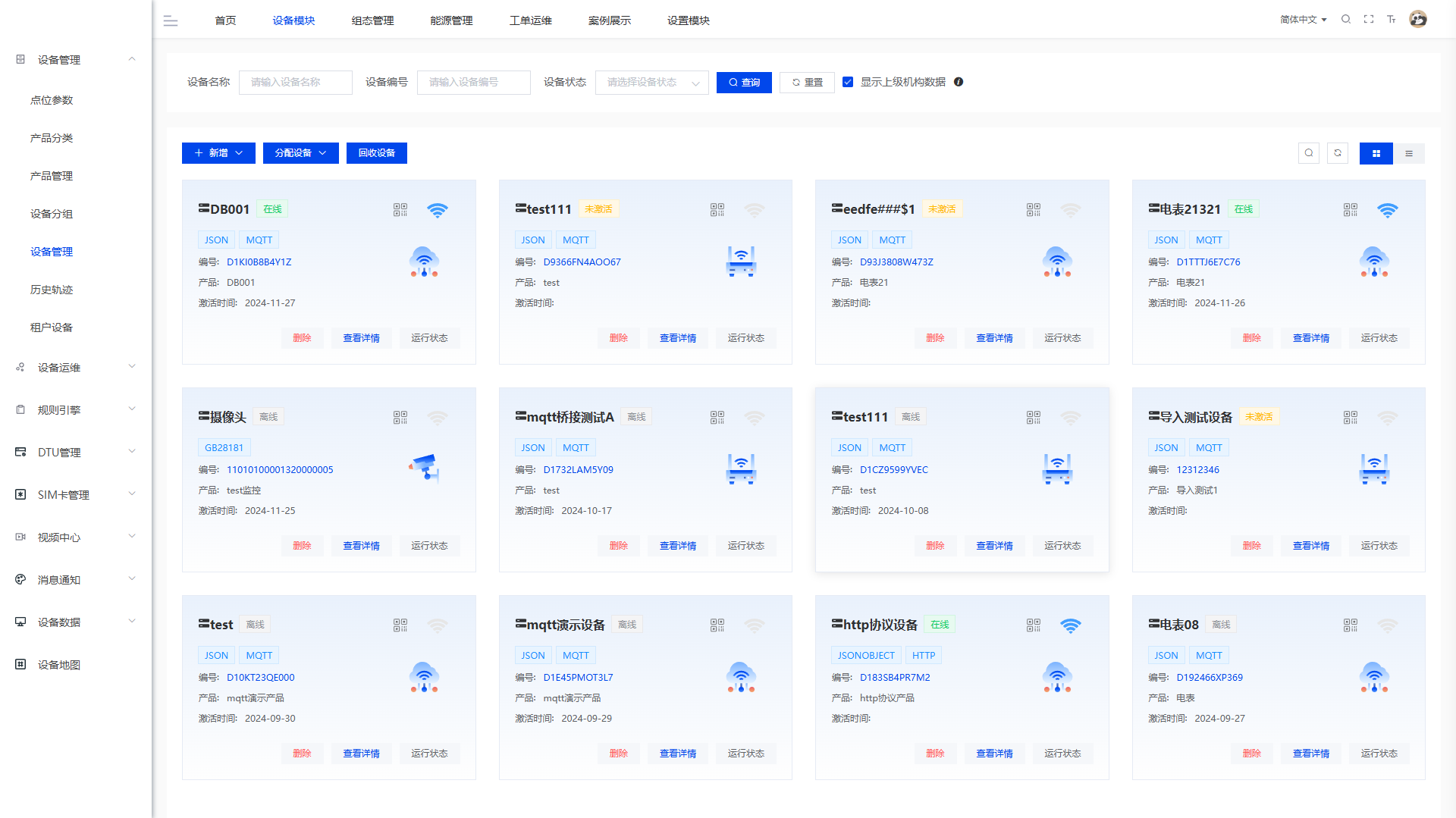 支持百万数量级传感器接入(包括第三方传感器),不同协议/接口传感设备快速选型配置。